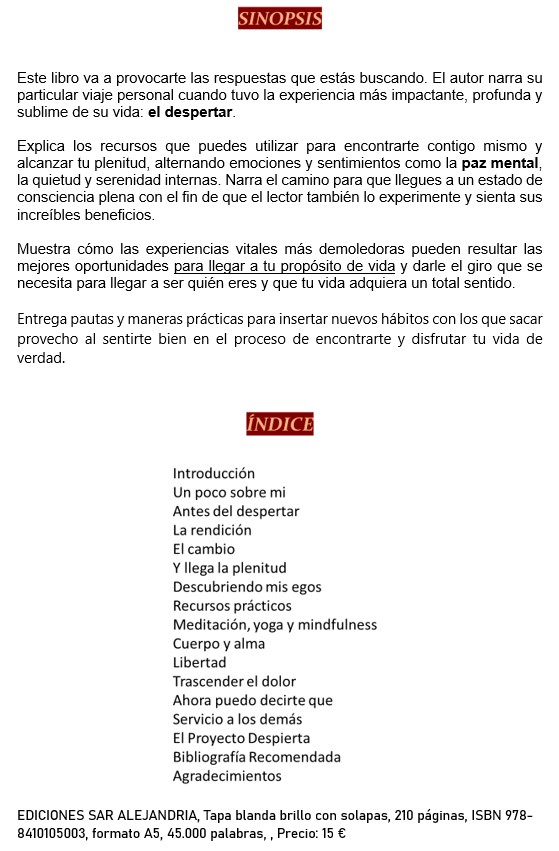 Dosier de Prensa para dar a conocer en medios periodísticos el DESPERTAR (de tu alma)